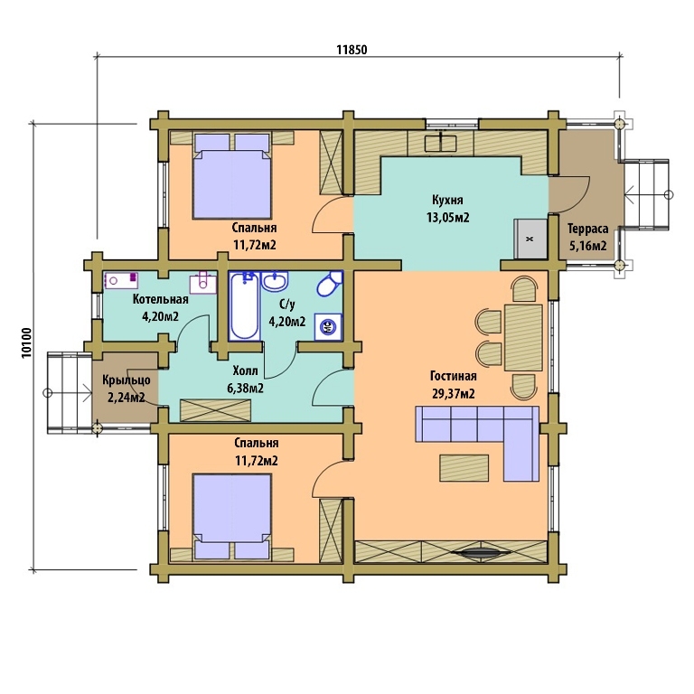 В цену сруба входит: Стропильная система, обрешетка на крышу, рубероид, балки пола, балки потолка, нагеля, межвенцовый утеплитель, антисептирование.