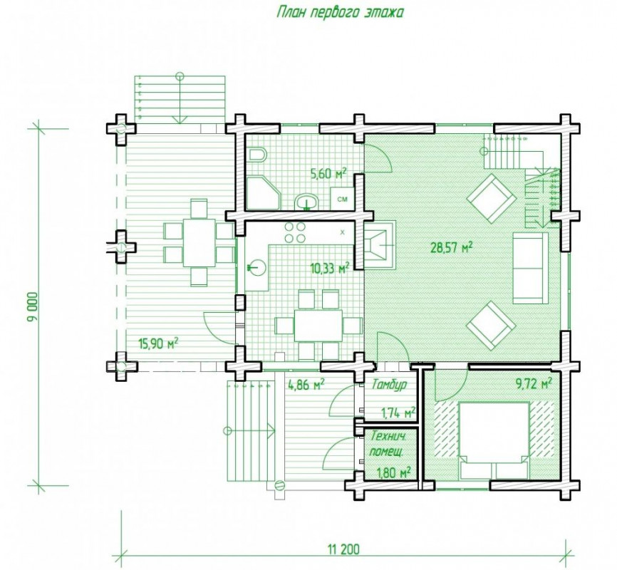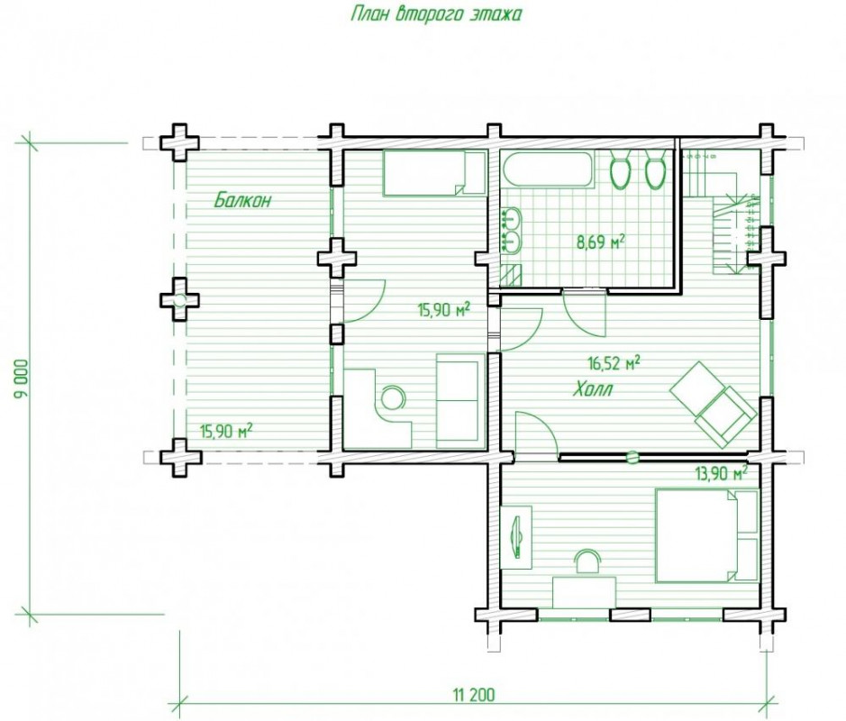 В цену сруба входит: Стропильная система, обрешетка на крышу, рубероид, балки пола, балки потолка, нагеля, межвенцовый утеплитель, антисептирование.