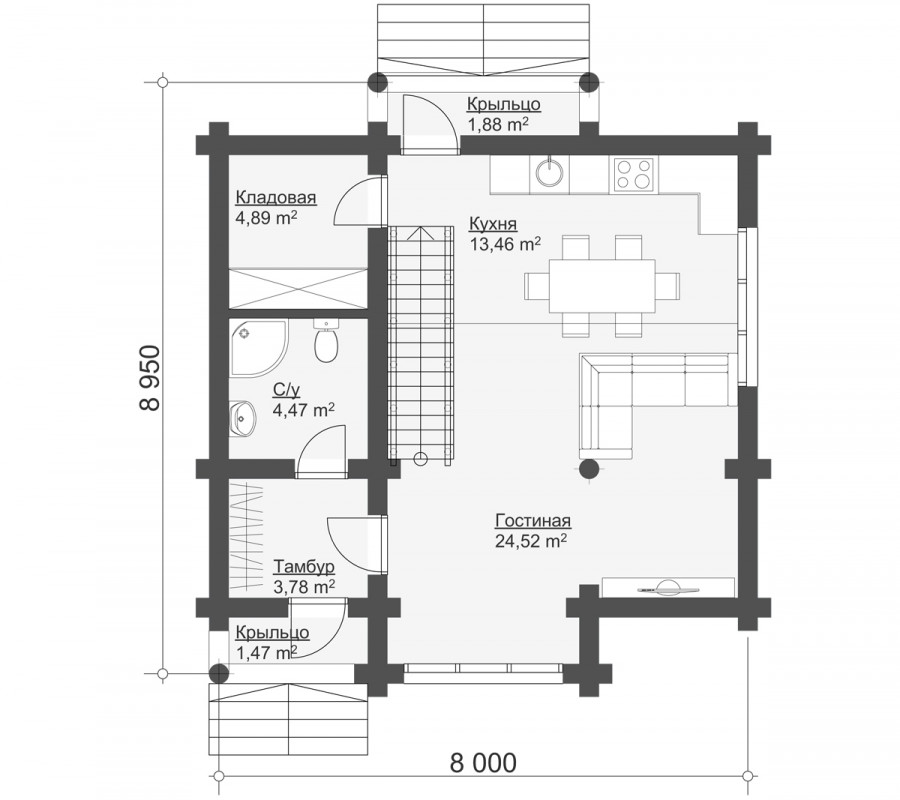 В цену сруба входит: Стропильная система, обрешетка на крышу, рубероид, балки пола, балки потолка, нагеля, межвенцовый утеплитель, антисептирование.